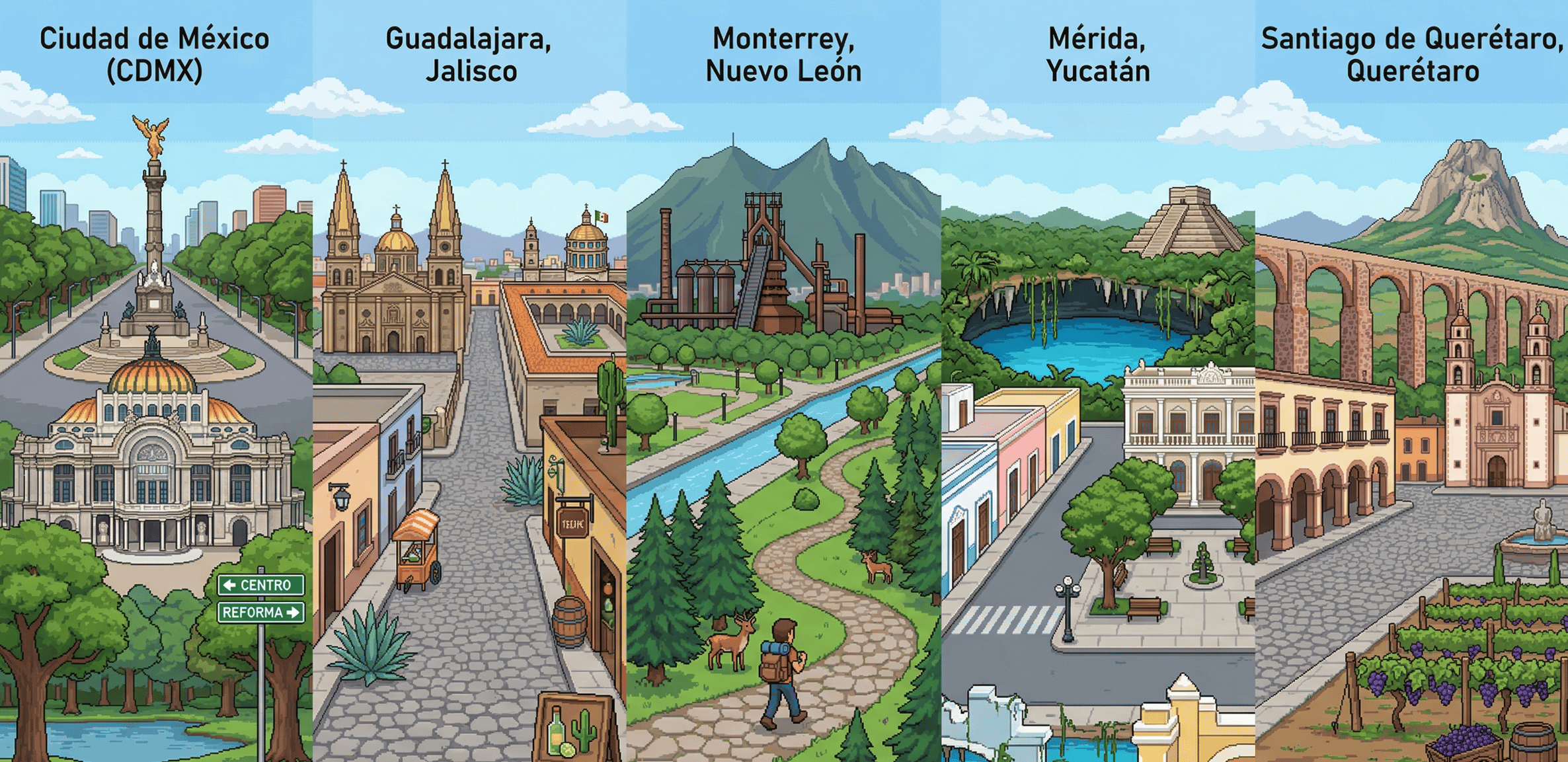 Recomendación: Visita el Parque Fundidora y recorre el Paseo Santa Lucía, o realiza senderismo en el Parque Ecológico Chipinque para disfrutar de las mejores vistas de la Sierra Madre con total tranquilidad.